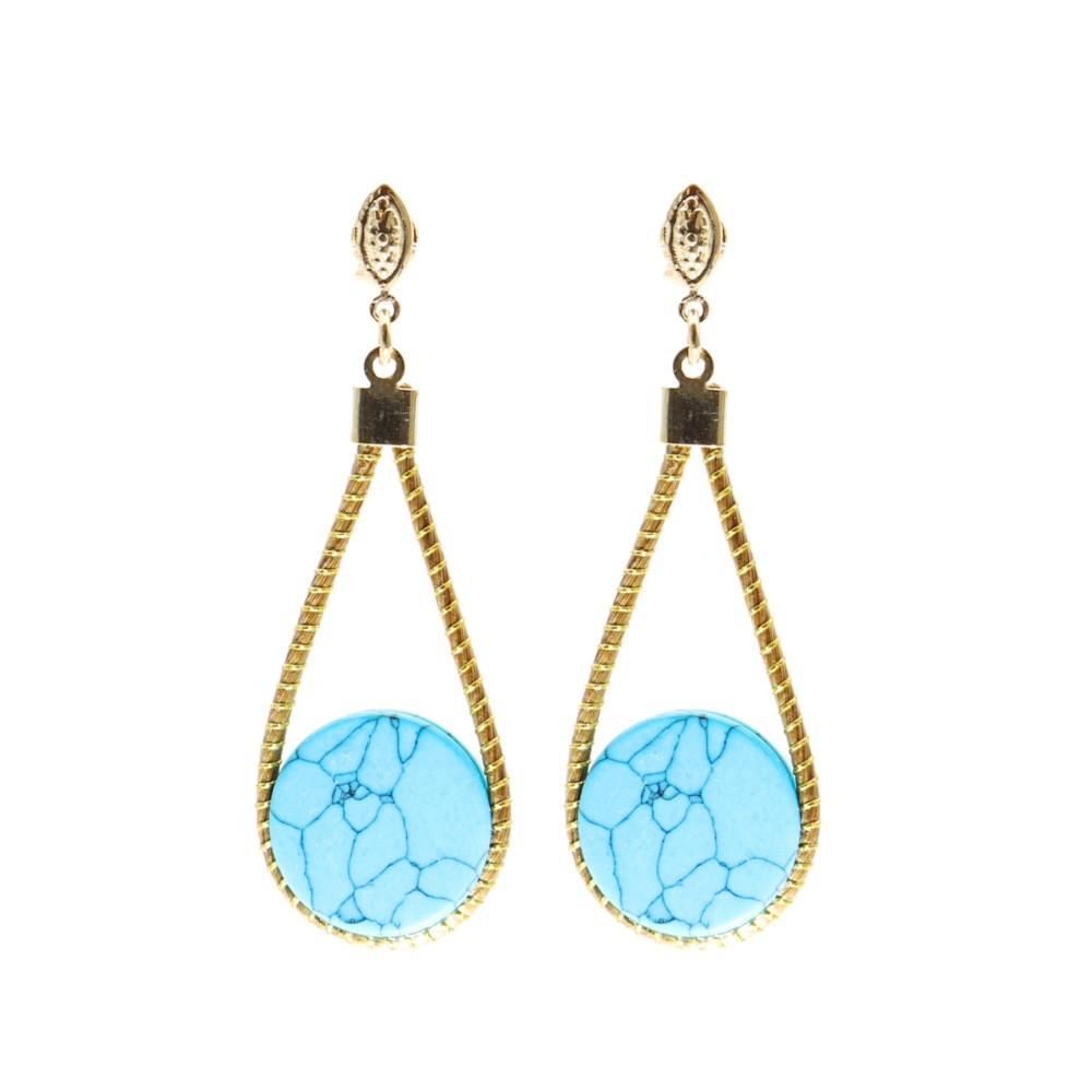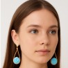 Élégantes et raffinées, ces boucles d’oreilles en or végétal adoptent une forme de larme, sublimée par un médaillon rond en pierre turquoise. L’association unique du doré naturel et du bleu éclatant apporte une touche de lumière et d’authenticité à vos tenues. Légères et originales, elles reflètent le savoir-faire artisanal et la beauté des matières naturelles, pour un bijou qui allie élégance et nature.