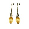 Élégantes et uniques, ces boucles d’oreilles sont réalisées à partir de véritables fibres d’or végétal, un matériau naturel issu des palmiers amazoniens. Leur forme allongée en goutte, sublimée par une monture en métal travaillé à l’esprit vintage, met en valeur la brillance soyeuse du végétal.